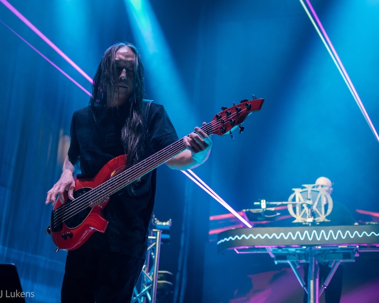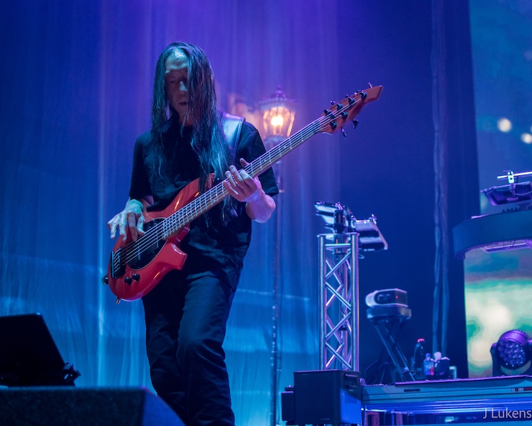 After playing through Parasomnia in order, Dream Theater took a fifteen-minute intermission and returned to the stage for a second set of fan favorites, such as the anthemic rocker “As I Am” and the thrashy “The Enemy Inside.” The slow-burning “Through My Words” started as a slow ballad featuring only LaBrie and Rudess, with the rest of the band later joining and shifting the song through several metal jams. During a free-flowing rendition of “Peruvian Skies,” the band incorporated licks from various songs into the jam, including Pink Floyd’s “Wish You Were Here” and Metallica’s “Wherever I May Roam.” They closed the second set with the frenetic crowd-favorite “Take the Time.” For the encore, the band blazed through the epic seven-part, 23-minute tour de force “A Change of Seasons,” off the 1995 EP of the same name.