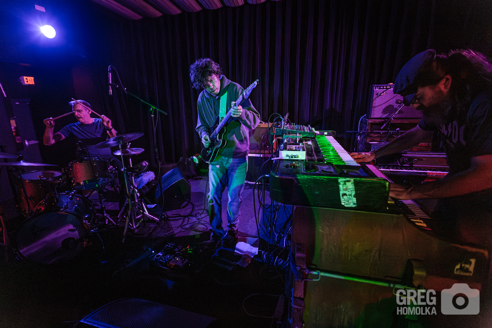 Kicking off with a deliciously funky warm-up tune that set the tone for what would follow, the trio signaled their commitment to the groove right out of the gate. While they were surely dipping into tunes off their new album, the song names hardly mattered to the dancing audience eager to see what they could stir up in the moment. On “Some Days,” the band eased into a cool and breezy meditation with Metzger letting a blissful solo unfold before the flowing jazz-rock of “Out of Curiosity.” “Cosmo” saw Paczkowski dipping into thick organ funk complemented by Metzger’s fuzzy guitar before segueing into a twangier style of funk playing on “Jasper’s World,” with Lawton putting down some of his most complex drumming of the night. Elsewhere, the band tapped into greasy jungle jams that bounced along with playful exoticism, always propelled forward by Lawton’s relentlessly in-the-pocket beat. The musicians seemed to revel in making decisions on the fly at their creative whim, switching from warm and shimmering jazz to highly danceable tango sounds and even throwing a Led Zeppelin tease into the mix. The effortless chemistry of these players was on full display as they twisted and turned from down and dirty funk to lighter, more buoyant fare, and even avant-garde stylings, all without ever losing the groove.