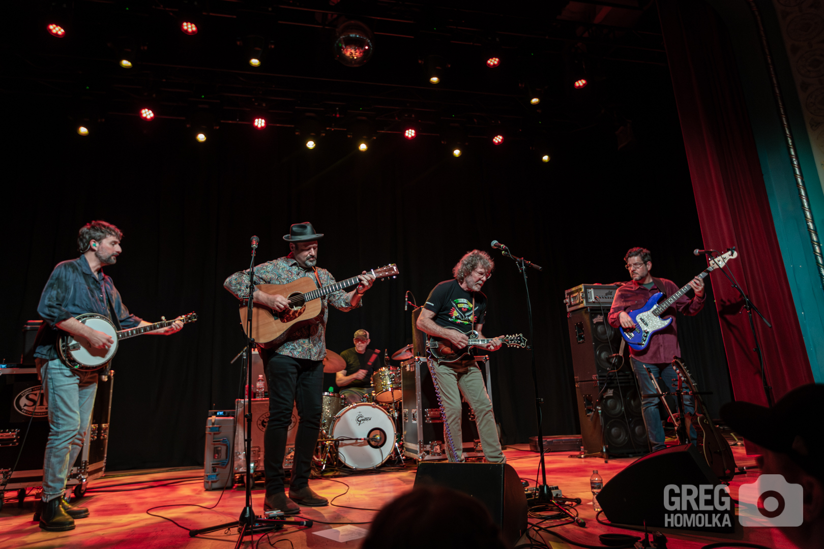 The band immediately set a positive tone for the night when they kicked off their set with a radiant cover of Leon Russell’s “One More Love Song” before dropping into a feisty “Riding That Bluegrass Train” that saw some impressive interplay between Bush’s mandolin and Wes Corbett’s banjo. The band continued leaning into that sunny spirit with their reggae-grass take on Peter Rowan’s “Revival,” only to do a complete 180 with the fast-paced, driving instrumental “Crooked Smile” that showcased proggy complexity and meaty solos from Stephen “Mojo” Mougin on guitar, and Corbett on banjo before Todd Parks chimed in with jazzy bass strutting. Riding high, Bush steered the band into a quick romp through the Muddy Waters blues classic “I’m a Man (Mannish Boy).”