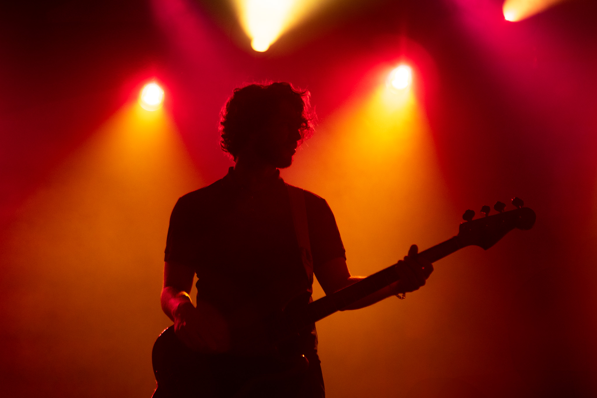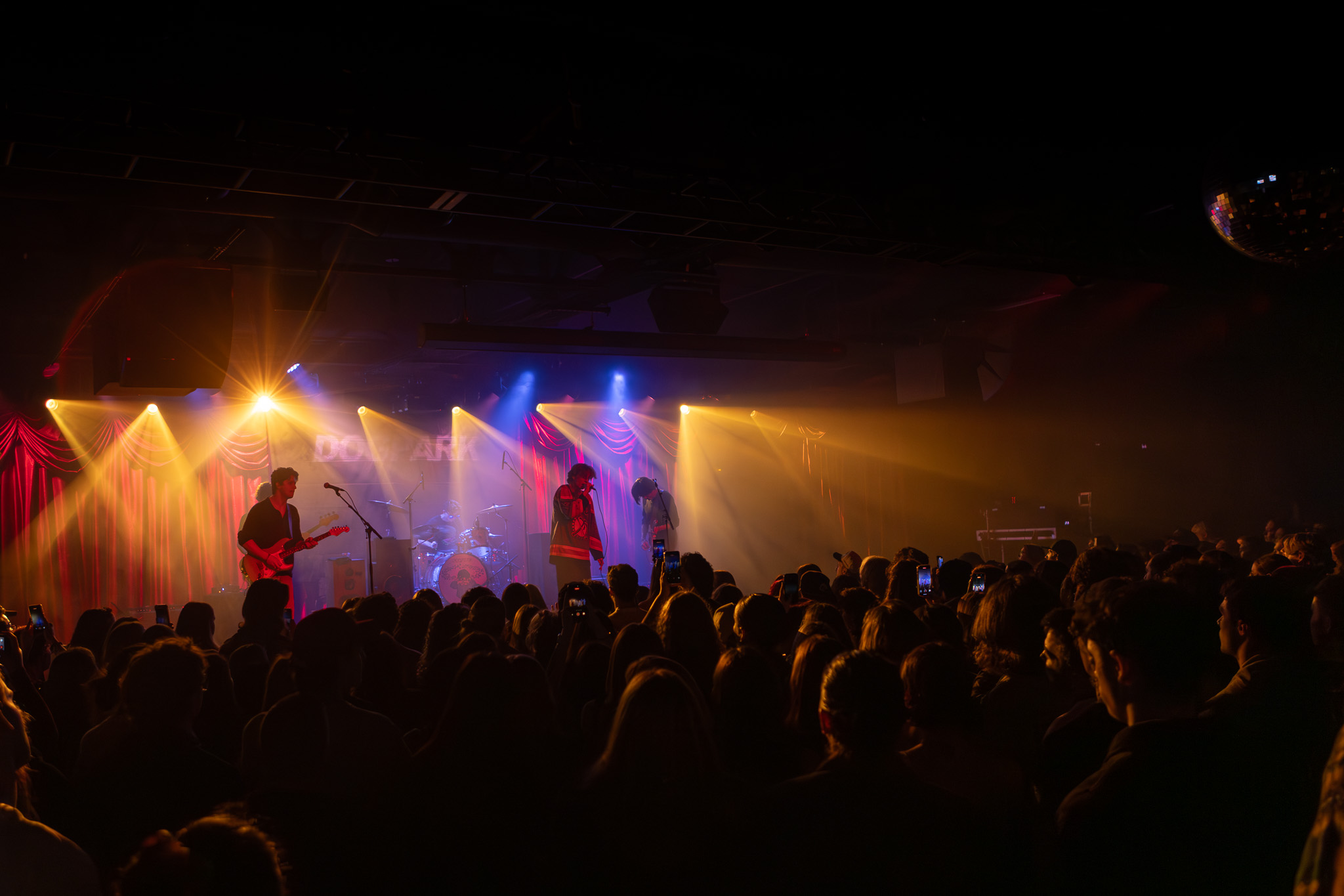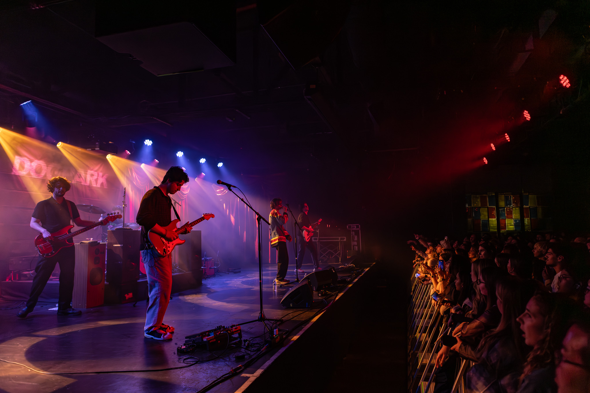 Finishing out ‘The Corporate Pudding’ Tour, Dogpark brought their tension-filled melodic rock formula to Brooklyn Bowl (Philadelphia, PA) on December 18th. Opening for Dogpark, Kids That Fly,a four-piece band that initially formed at the University of Connecticut, blended alternative rock with pop and synth elements. Members consist of Nick Smeriglio (lead vocals/guitar), Blake Henry (guitar/synth), Braden Fradino (bass/vocals), and Adam Machado (touring drummer). Their breakout track, “Kiss Her You Fool,” blends nostalgic 2000’s pop with a modern rock twist. Kids That Fly had fantastic chemistry, with an undeniable stage presence and a heavy guitar sound that complemented Dogpark’s set. Their set is one you wish were longer than the allotted 45-minute ‘opener’.
