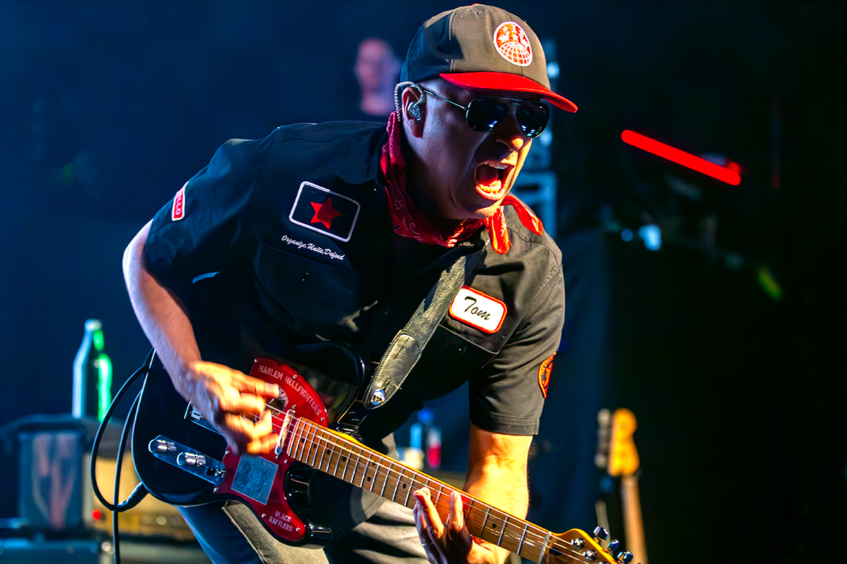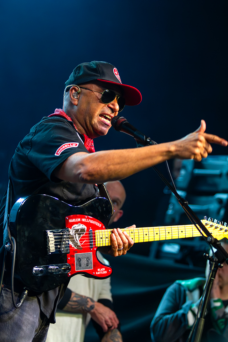 Tom Morello then took control of the room, opening with Rage Against the Machine’s “Killing in the Name.” The crowd shouted every lyric back at him, turning the song into a collective release. Between songs, Morello delivered impassioned speeches about resistance, community defense, and anti-fascism, at one point praising deputies in attendance as anti-fascist crime fighters. His set also drew from The Nightwatchman and Audioslave, mixed with Rage instrumentals, before closing with Woody Guthrie’s “This Land Is Your Land.”