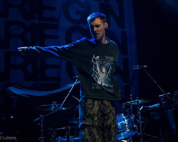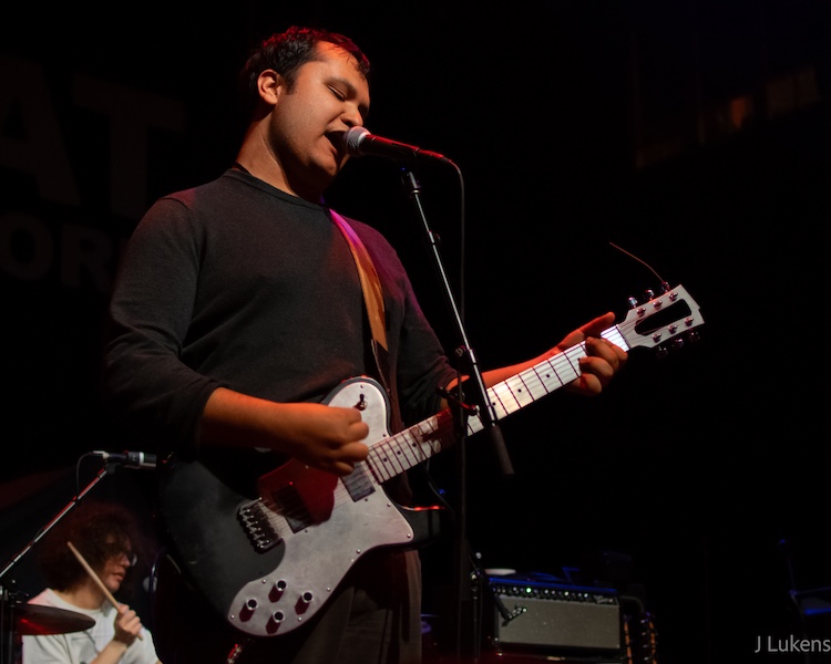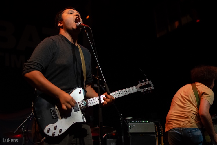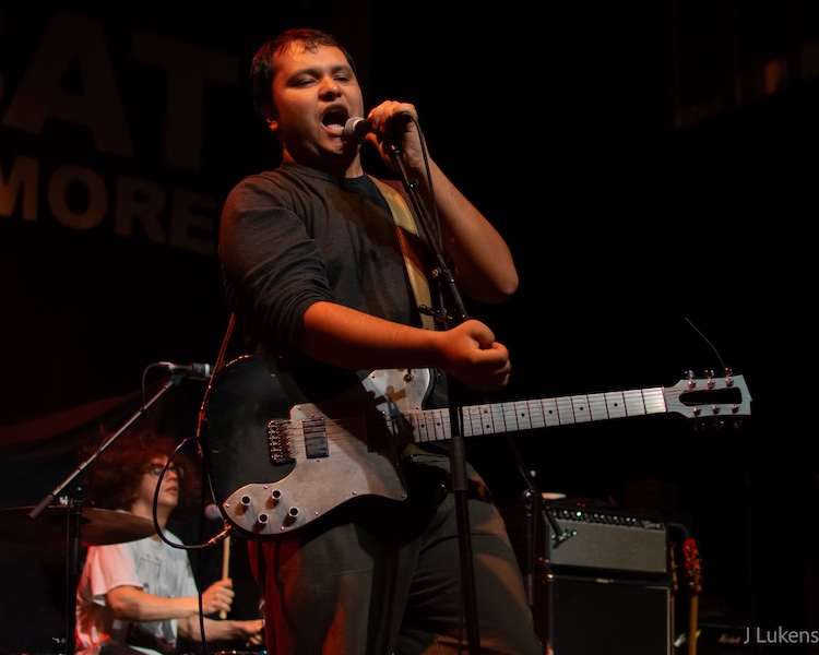 Next came the heaviest performance of the night, provided by Washington, D.C. duo Teen Mortgage. Though guitarist and singer James Guile and drummer Ed Barkauskas didn’t take up much space onstage, they filled the theater with their infectious intensity. Guile’s vocals ranged from raspy screams to guttural grunts while banging his head and playing thick hardcore punk riffs. Between songs, Guile directed his ire at various political targets, most notably Live Nation and Trump. Born in the U.K., Guile moved to D.C. and spoke and sang with a British accent, though he apparently lived in Orlando at some point. “I used to deliver pizza for a Pizza Hut near Valencia College,” he said.