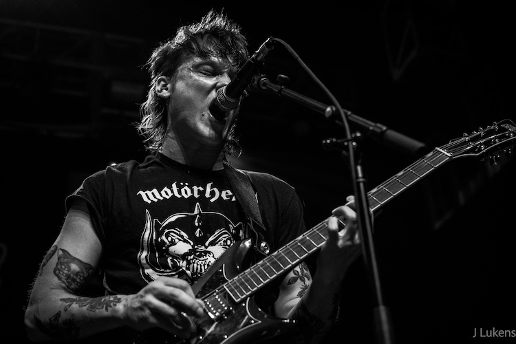 “I never thought we would ever play at Disney. I guess we’re all Disney Adults now,” Shelton said. The Disney Adults in the audience sang along to the melodic choruses while moshing and crowd surfing. Shelton led these sing-alongs, twice climbing onto the pit barrier to lean into the crowd. In addition to songs from God Save the Gun and Life Under the Gun, the band covered Dazy’s “Pressure Cooker” and The Strokes’ “You Only Live Once.”
